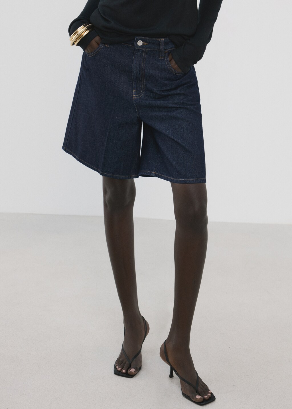 High-waist straight-fit denim shorts
