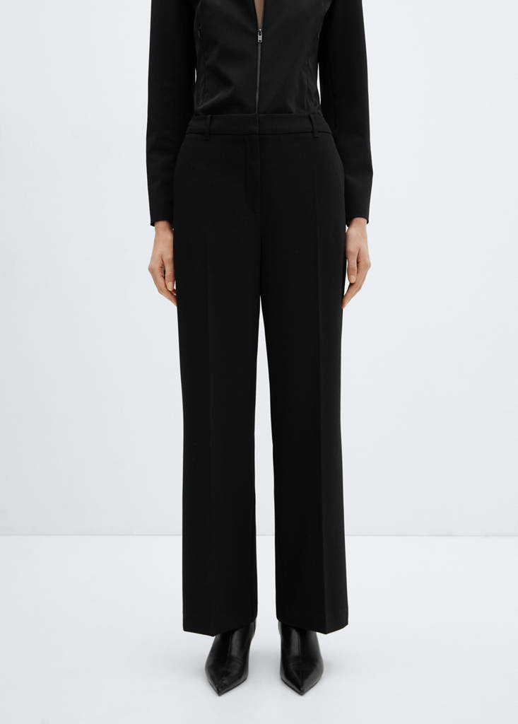 Fluid fabric. Long design. Wide-leg design. Low waist. Belt loops. Two side pockets. Concealed button, hook and zip fastening. Inner lining. Office looks. Wide leg. Medium. Mid-rise.