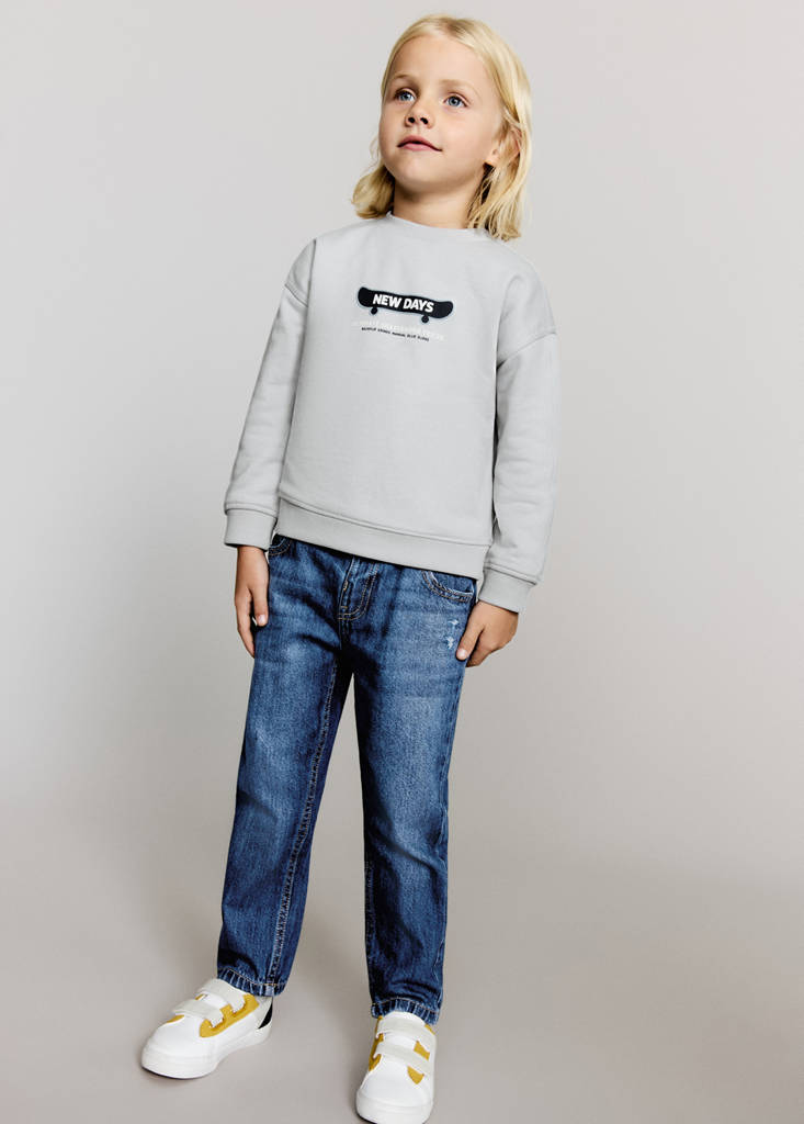 Straight cotton jeansCurrent price [€ 19.99 ]€ 19.99Select a colourDark BlueSelect your size9-12 months (80cm)Not available. I want it!12-18 months (86cm)Not available. I want it!18-24 months (92cm)Not available. I want it!2-3 years (98cm)Not available. I want it!3-4 years (104cm)Not available. I want it!4-5 years (110cm)Not available. I want it!5-6 years (116cm)Not available. I want it!DimensionsNotify meAdd to WishlistSee lookConvenient home delivery100% cotton fabric. Straight design. Long design. Belt loops. Button closure. Two side pockets. Two patch pockets at the back. Back to schoolDetails, composition and careStore availabilityItem qualitiesRecycled cottonAt least 20%This fibre is obtained from pre- and post-consumer textile waste that is transformed into new fabrics.