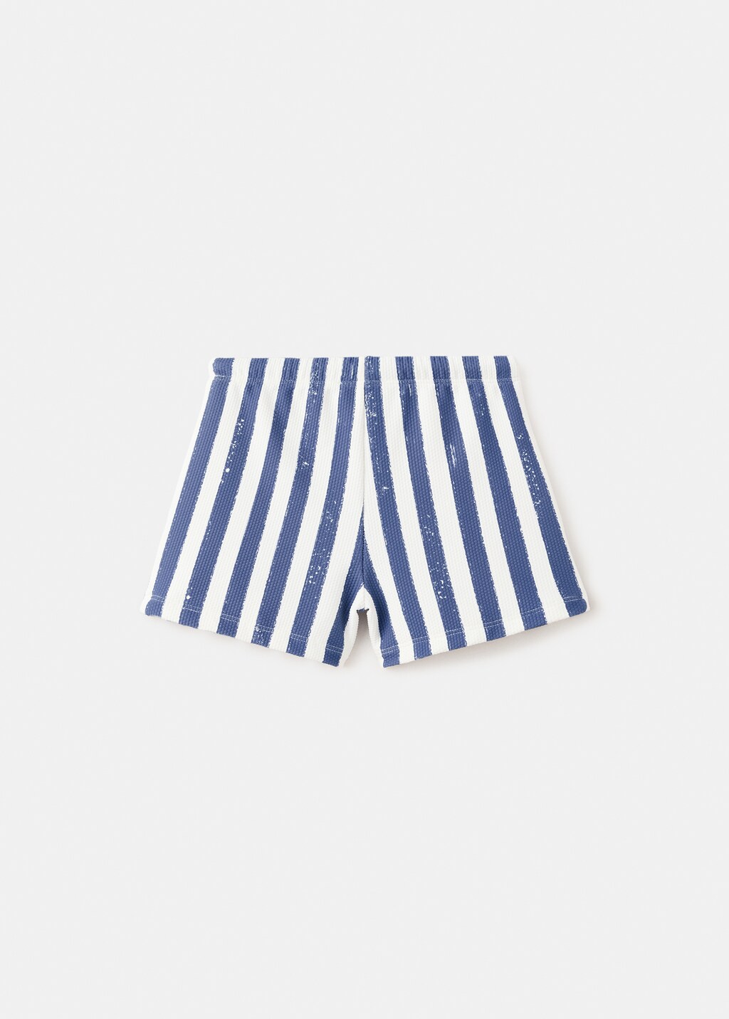 Boxer type. Stretch fabric. Stripe design. Contrasting elastic waist with adjustable cords. Swimwear collection.