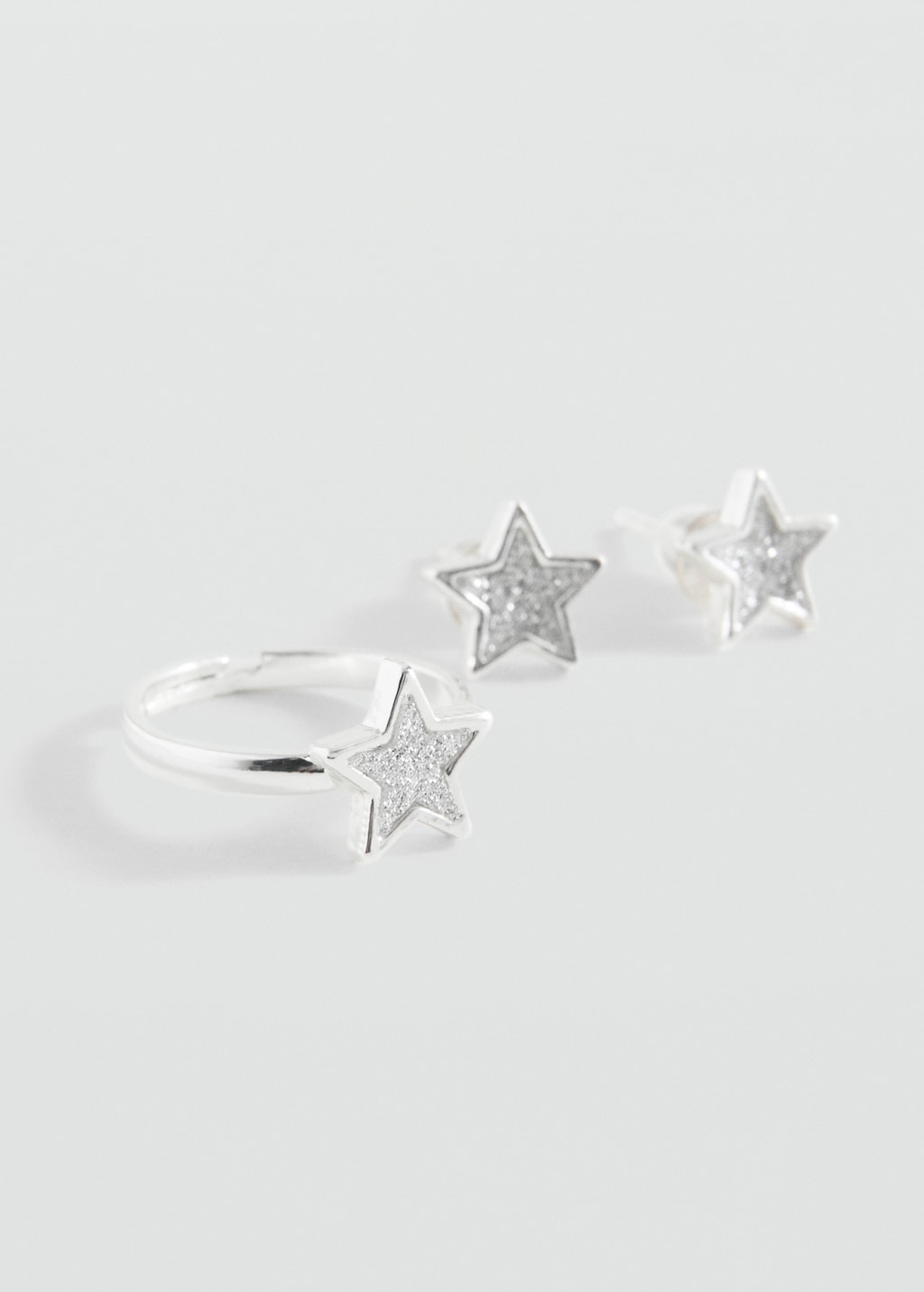 Pack of 3. Collar. Earrings. Ring. Metallic design. Pattern star. Brilliant design.