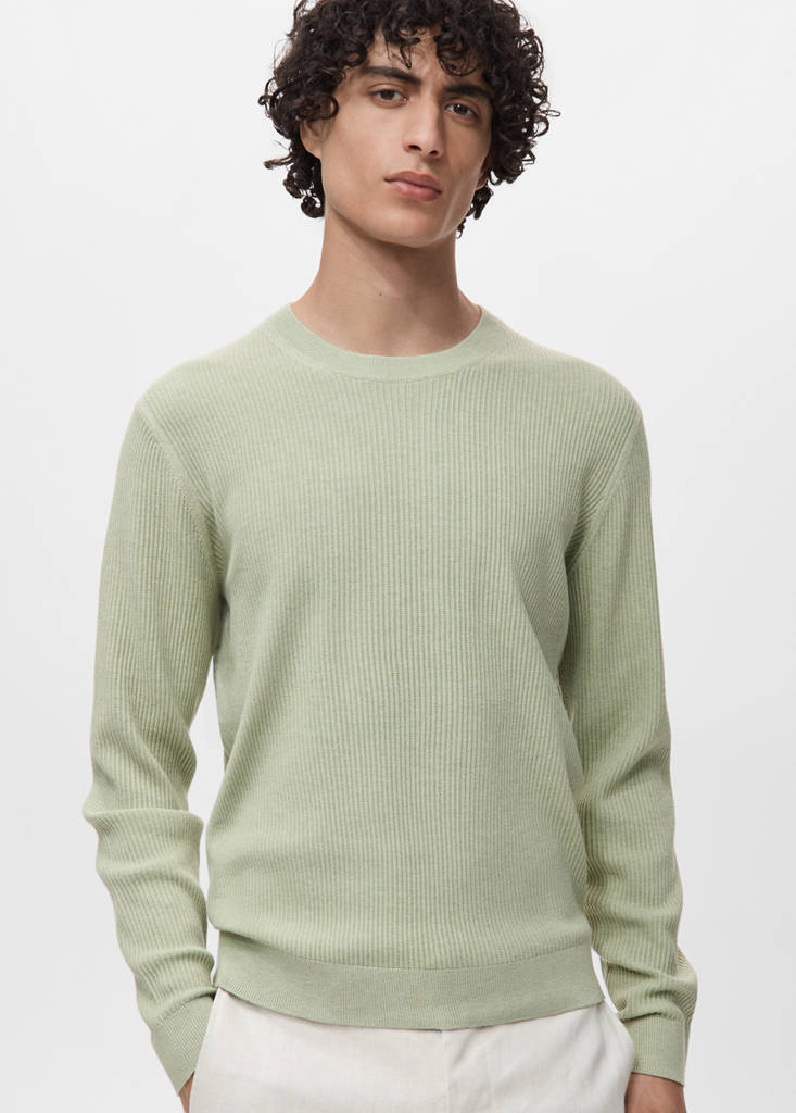 Regular fit. Cotton blend fabric. Cable knit fabric. Round neck. Long sleeves with elastic cuffs. Straight hem. Untrimmed hem. The chocolate brown and sky blue models are online exclusives. Fine knit fabric. Ribbed design. Standard Length. Long Sleeve Length. Straight Silhouette. Round Lapel Collar. Fine Knit Structure. Promotional product