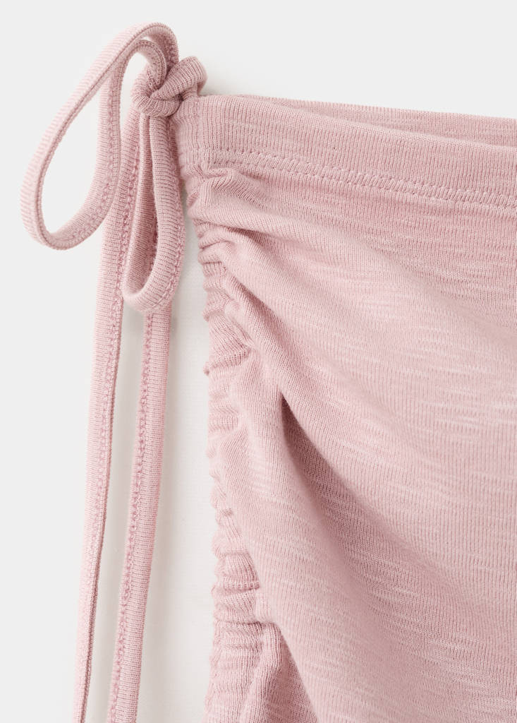 Cotton blend fabric. Straight design. Short design. Elastic waist. Adjustable tie details