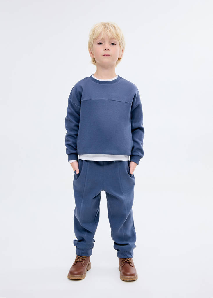 Tessuto 100% cotone. Design oversize. Design liscio. Girocollo senza cappuccio. Manica lunga. Colletto, polsini e orlo a coste. Dettaglio di cucitura. Total look