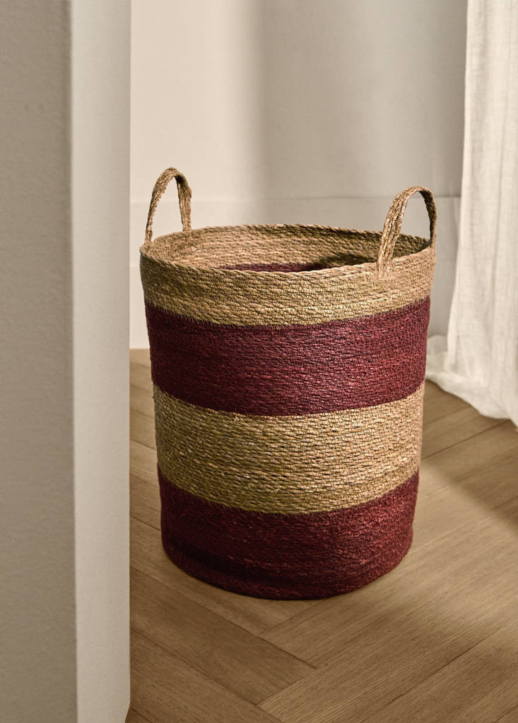 Diametro: 38 cm Altezza: 44 cm. 100% seagrass. Due manici corti. Design bicolore. Aggiungi un tocco colorato e speciale