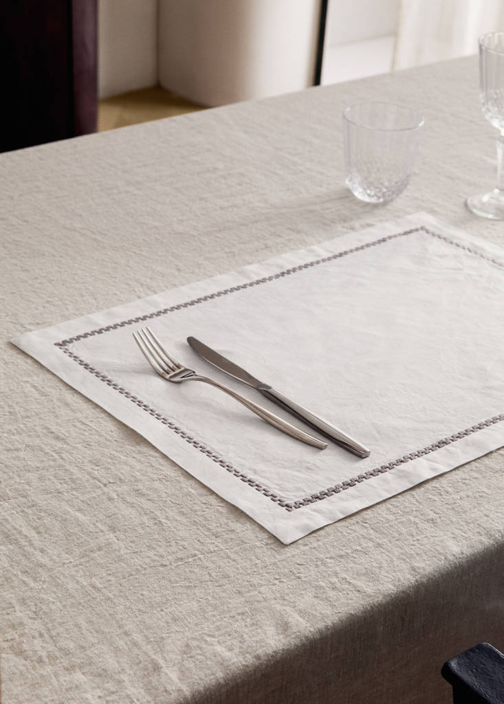 100% Lino. Fatto a mano. Dettagli colore. Tovaglietta. Dimensione: 35x50cm. Fresco, morbido, durevole, traspirante e versatile. Ideale per aggiungere eleganza e freschezza al tavolo. Venduto singolarmente