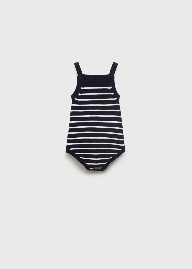 Tessuto 100% cotone. Tessuto di maglia sottile. Design a righe. Scollo quadrato. Spalline sottili. Bretelle con chiusura a bottone. Spacco sul fondo con chiusura a bottoni. Chiusura con bottoni a pressione. Completo