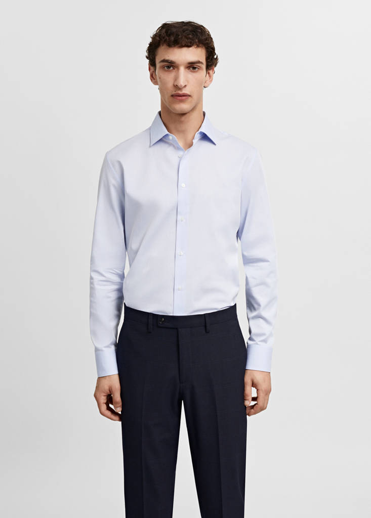 قصة سليم فيت. نسيج بوبلين مصنوع من القطن 100٪. سهل الكي. ياقة عالية لينة. أكمام طويلة مع أساور بأزرار. إبزيم بزر في الأمام. حاشية مستديرة. نسيج قطن ستريتش. ياقة بقصة مستقيمة. إغلاق بأزرار في الجزء الأمامي