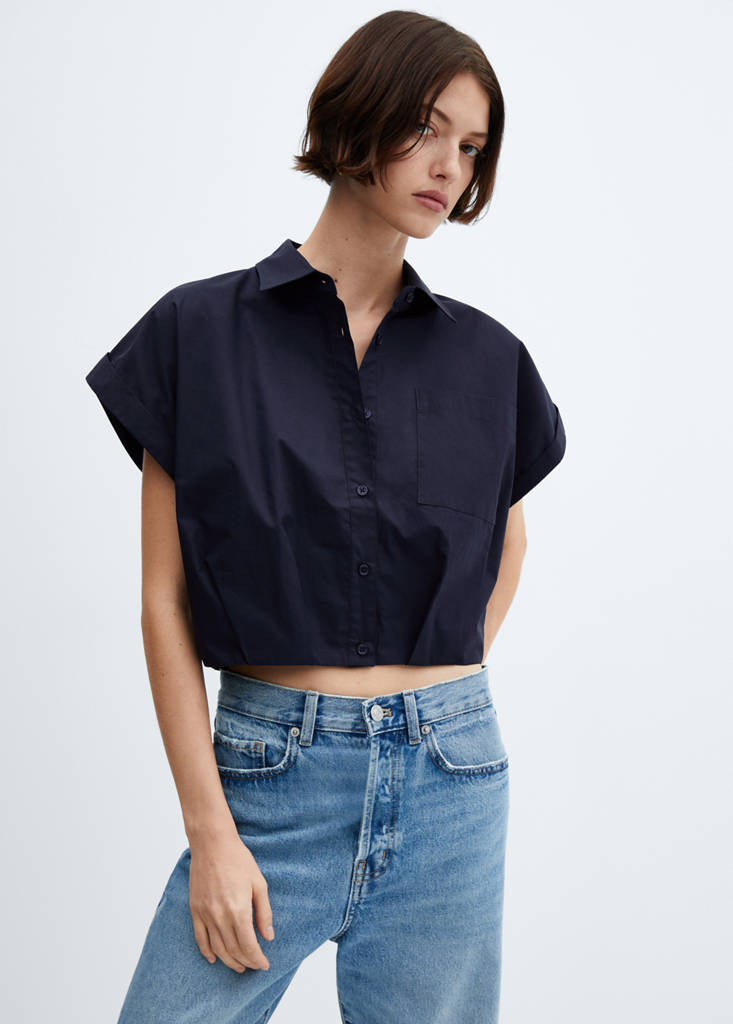 100% قطن. تصميم كروب. ياقة قميص. أكمام قصيرة. جيب رقعة على الصدر. إغلاق أمامي بأزرار