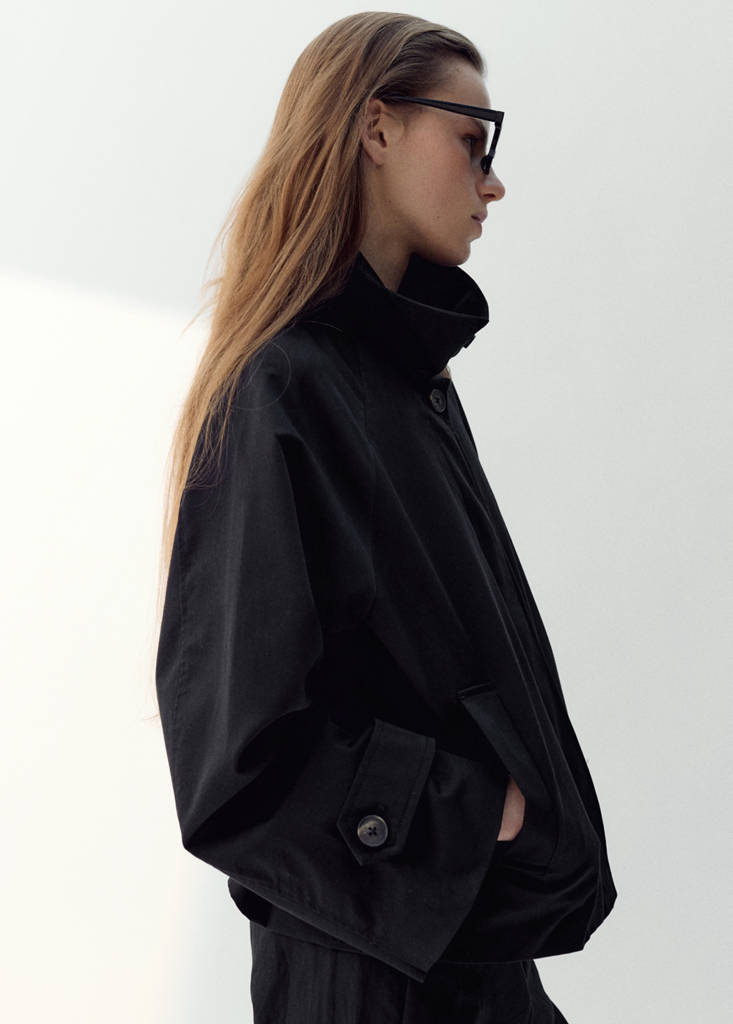 كتان. تصميم مستقيم. ياقة قميص. أكمام طويلة مع أطراف مخططة بأزرار. إغلاق بسحاب أمامي. بطانة داخلية. حصريًا عبر الإنترنت. Total look