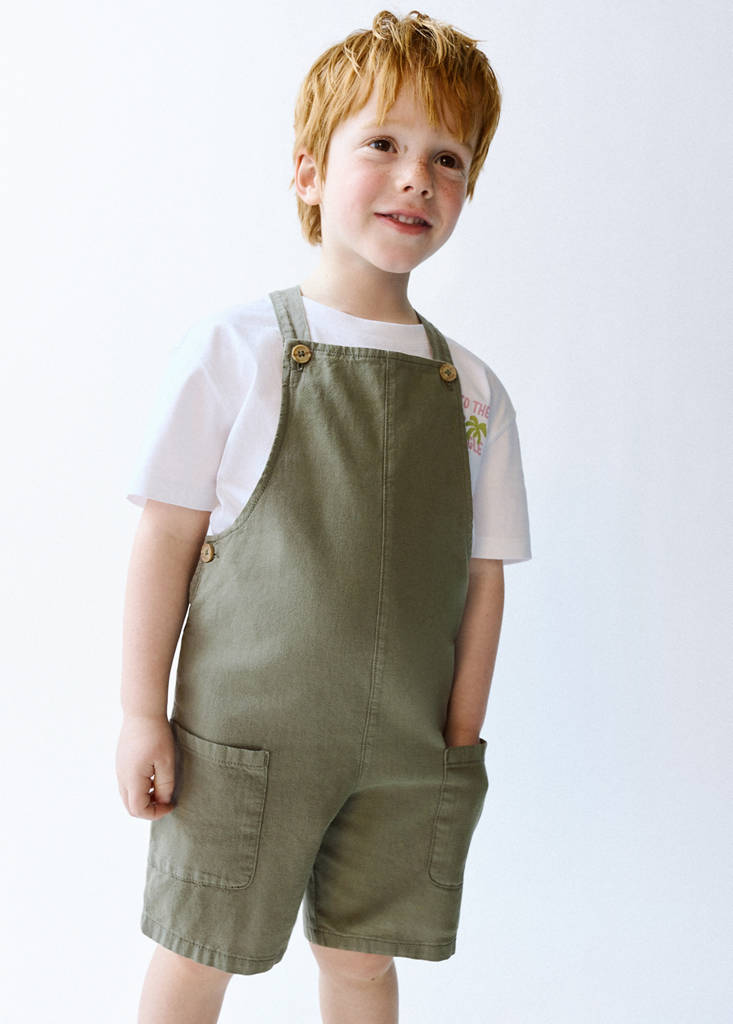 نسيج مزيج من القطن والكتان. تصميم مستقيم. ياقة مستقيمة. حمالات مع قفل أزرار. جيبان أماميان. أزرار غلق في الجانبين