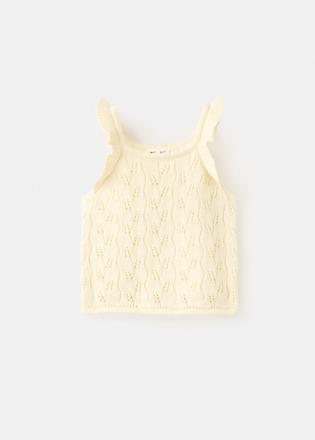 نسيج محبوك مثقوب. 100% قطن. تصميم مستقيم. حاشية قصيرة. أشرطة بكشاكش.