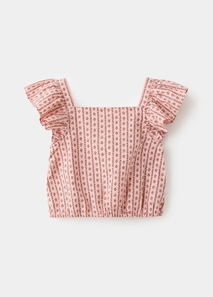 مصنوعة من قماش 100% قطن، فتتميز هذه القطعة بتصميم مستقيم وياقة مستقيمة وأكمام قصيرة بكشكش. توفر إطلالة كاملة