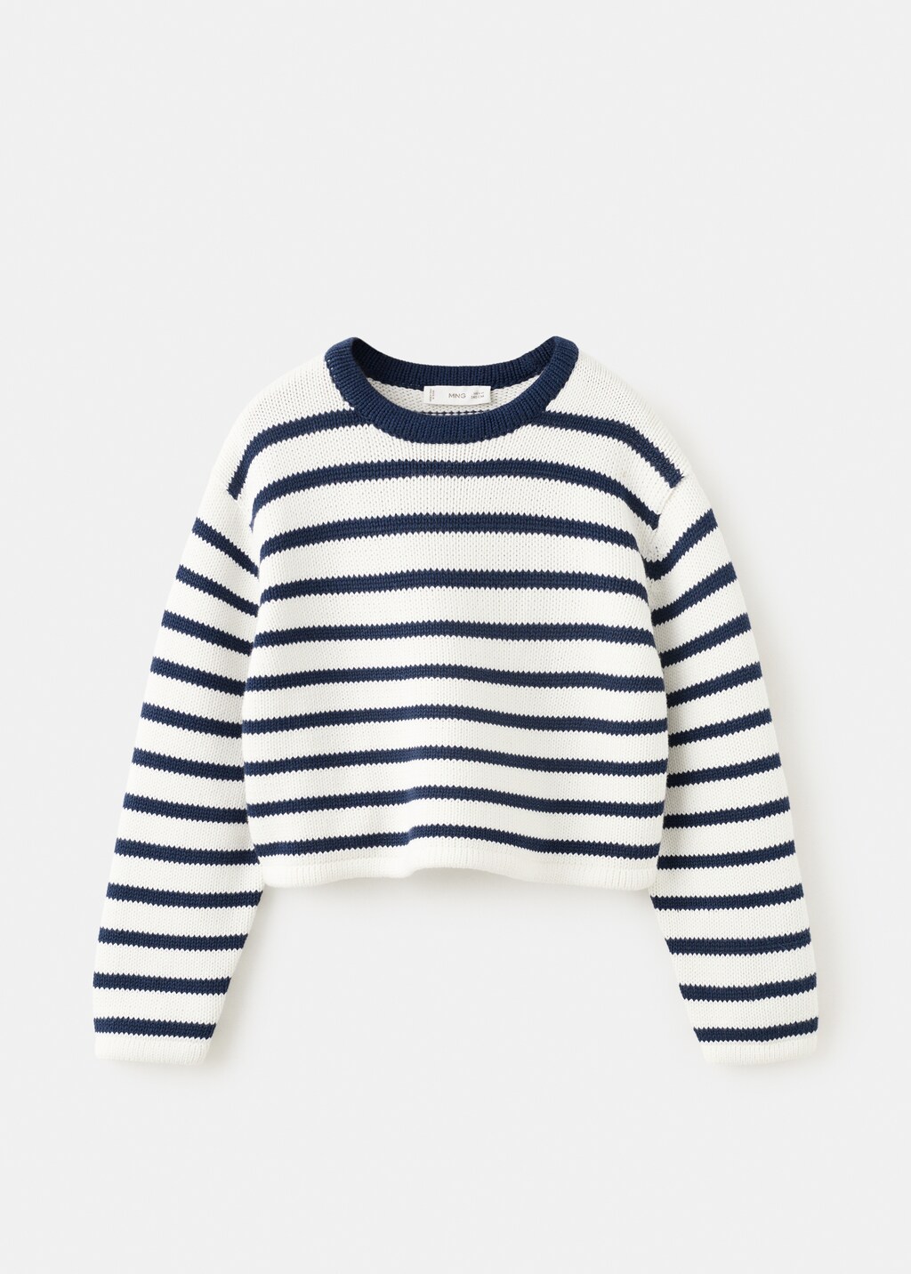 نسيج 100% قطن. نسيج محبوك ناعم. نسيج مخطط. تصميم مستقيم. رقبة دائرية متباينة. أكمام طويلة.