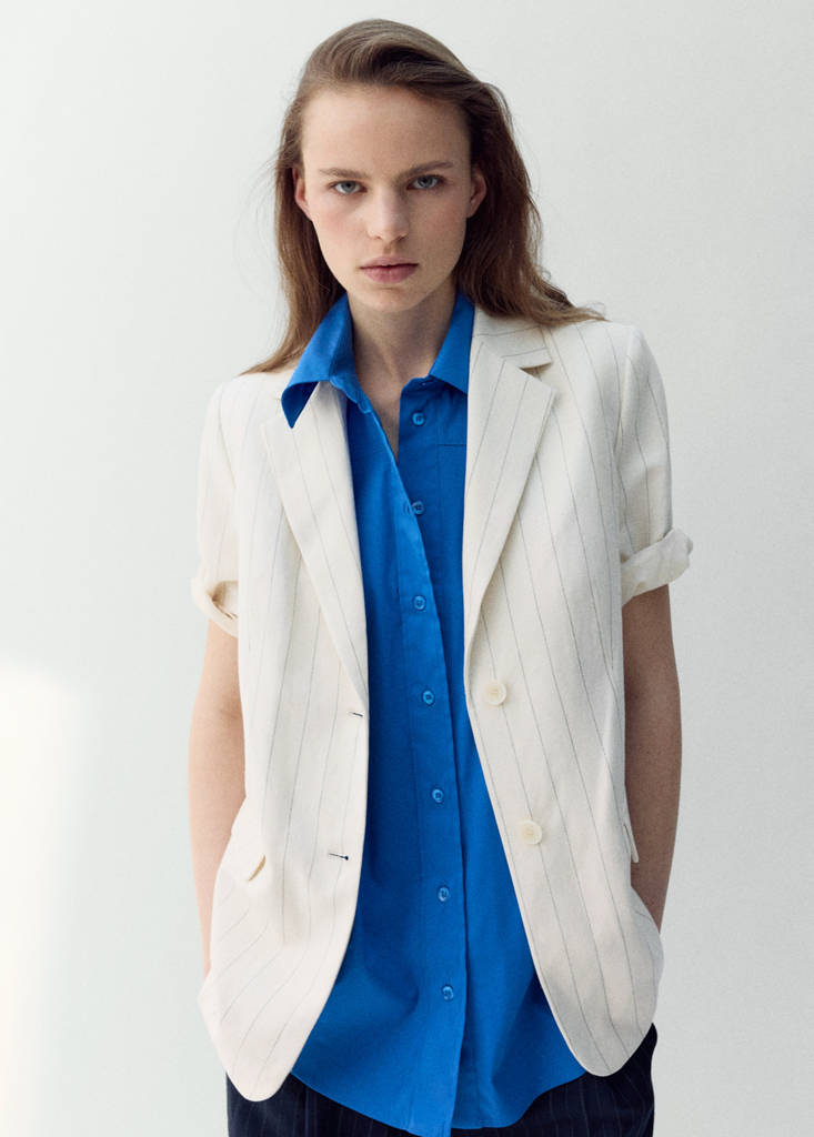 Linen suit jacket with beltCurrent price [JOD 79.00 ]JOD 79.00Select a colourEcruThe model is wearing size S and is 178cm tall.Select your sizeXXSXSSMLXLXXLMeasurementsAddAdd to your wishlistSee lookFree delivery to storeLinen mix. Straight Design. Lapel-collar V-neck collar. Three quarter sleeve. Lapel with notch. Two pockets with flaps. Front closure with buttons. Belt detail at the waist. Total lookDetails, composition and careStore availability