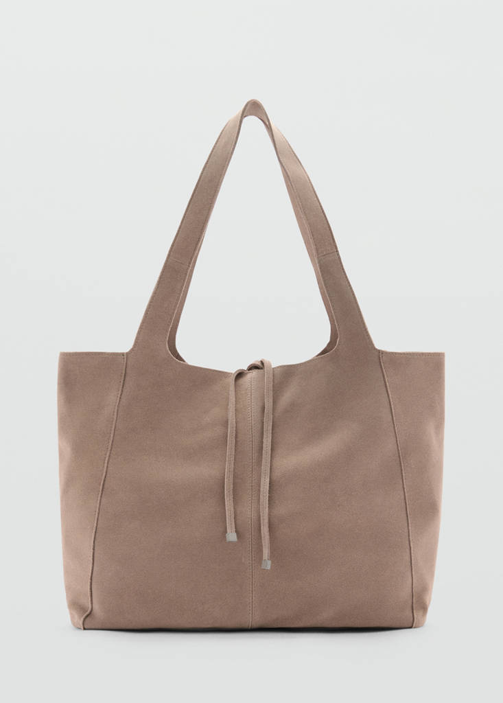 Medium. 100% bovine leather. Double handle. Shoulder strap. Inside bag. Zip fastening. Tie fastening. Inner lining. Suede