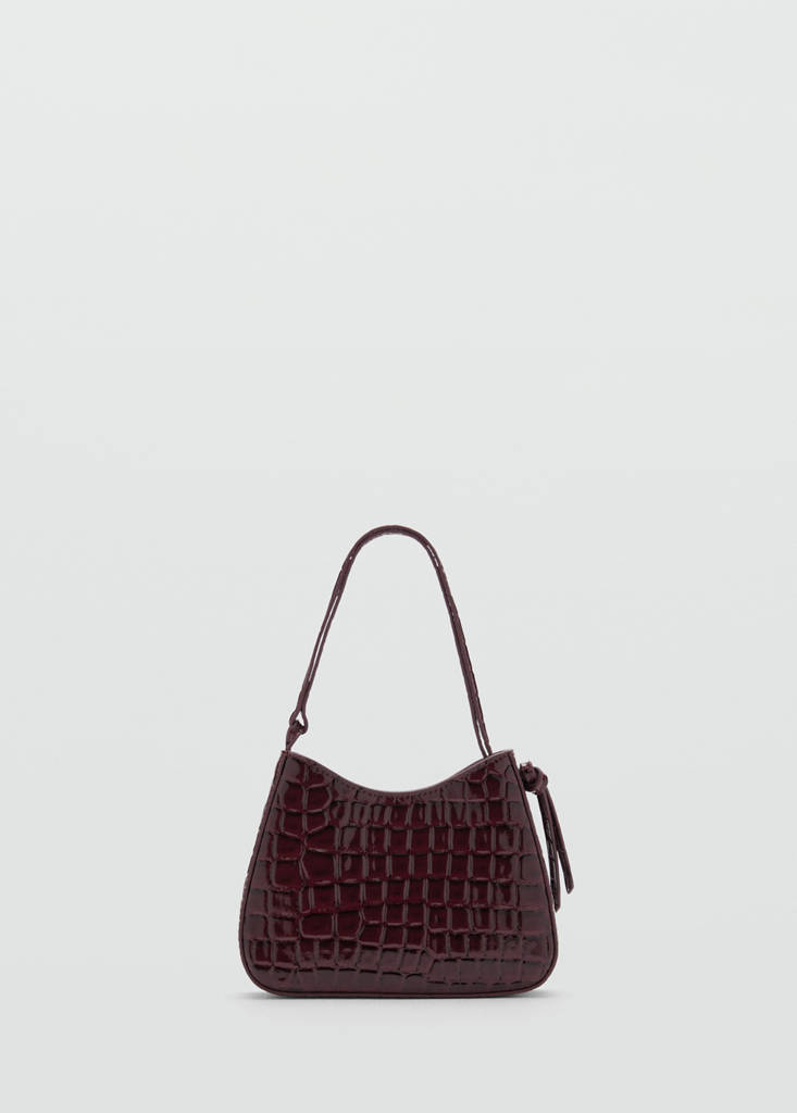 Mini size. Faux leather. Patent leather effect. Crocodile effect. Shoulder strap. Upper zip fastening. Animal print
