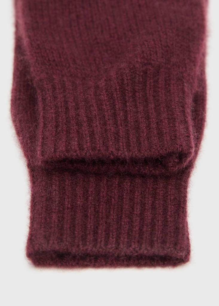 100% cashmere. Cable knit fabric. These gloves have matching hat, scarf and socks. The green colour is an online exclusive. The burgundy colour is an online exclusive. Selection Collection