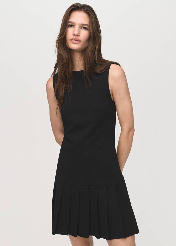 Stretch fabric. Short design. Fitted design. Round neck. Sleeveless. Wide straps. Pleats at the hem. No Fastening. This garment is part of our casual collection, designed to stylishly accompany you in your day-to-day life