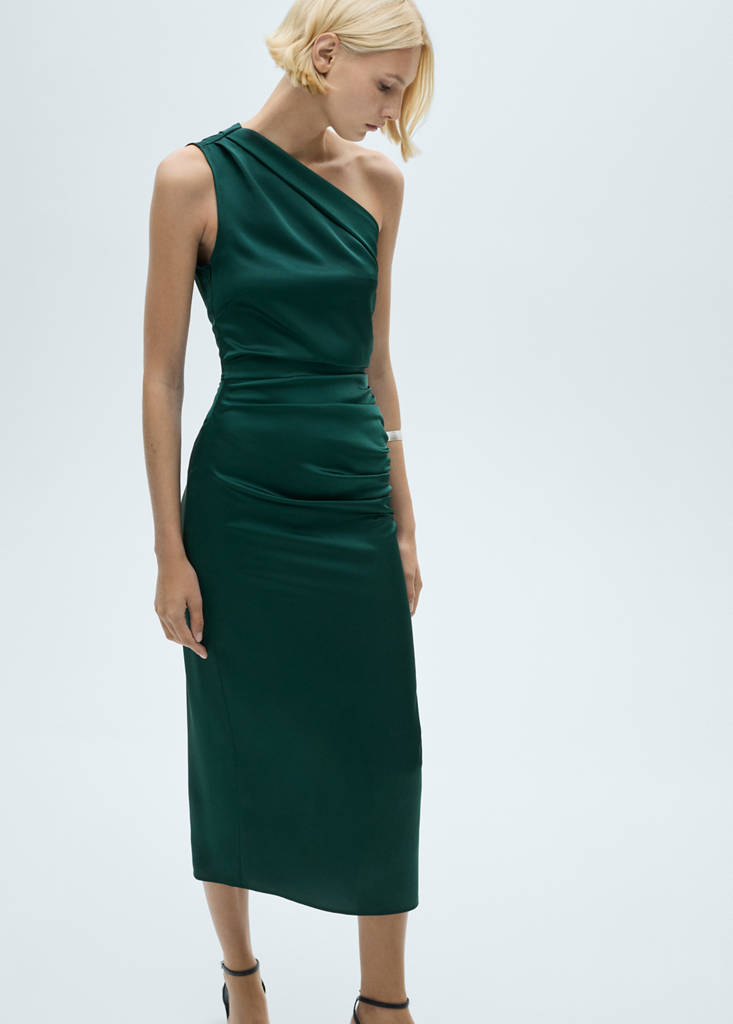 Asymmetrical pleated dressCurrent price [JPY 9,990 ]JPY 9,990Select a colourGreenSelect your sizeXXSXSSMLXLXXLDimensionsAdd to WishlistSee lookFree delivery to storeStraight design. Fitted design. Midi design. Asymmetric neckline. Sleeveless. No Fastening. Ruched details. Side slit at the hem. Party, ceremony and communion collectionDetails, composition and careStore availability