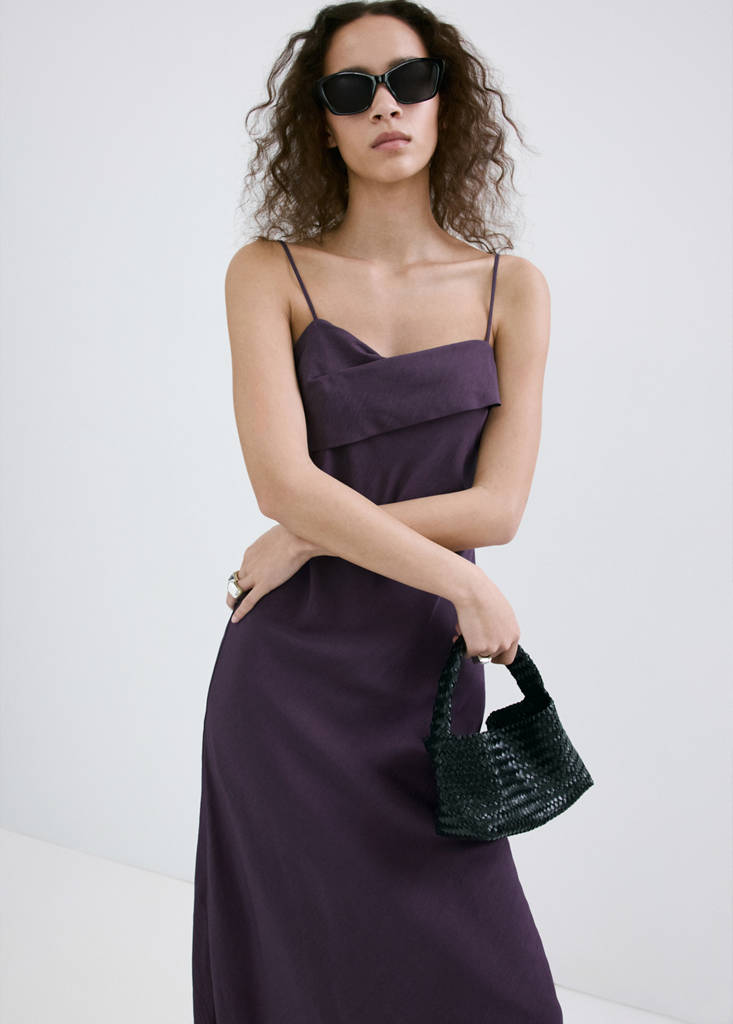 Midi dress with a crossover necklineCurrent price [JPY 10,900 ]JPY 10,900Select a colourLilacThe model is wearing size S and is 178cm tall.Select your sizeXSSMLMeasurementsAdd to WishlistSee lookFree delivery to storeFluid fabric. Midi design. Straight design. Thin straps. Wrap neckline. Open-back design with a tie closureDetails, composition and careStore availability