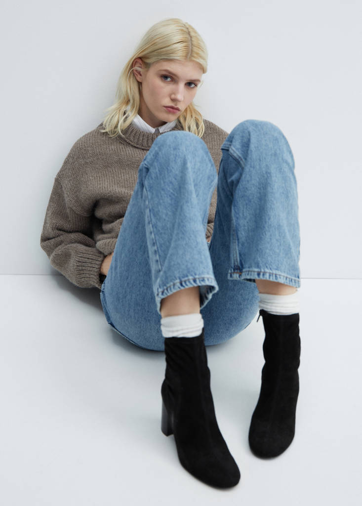 Round-toe heeled ankle bootsCurrent price [JPY 9,990 ]JPY 9,990Select a colourBlackThe model is wearing size 41 and is 179cm tall.Select your size3536373839404142DimensionsAdd to WishlistSee lookFree delivery to storeFaux suede. Round toe. Block heel. Side zip fastening. 7.5 cm heelDetails, composition and careStore availability