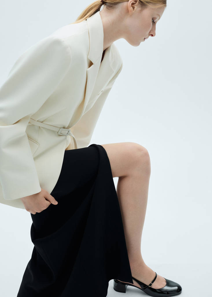 Heeled shoes with buckleCurrent price [JPY 8,990 ]JPY 8,990Select a colourBlackThe model is wearing size 41 and is 178cm tall.Select your size3536373839404142DimensionsAdd to WishlistSee lookFree delivery to storePatent leather effect. Slingback design. Round toe. Block heel. 5 cm heel. Strap closure with buckleDetails, composition and careStore availability