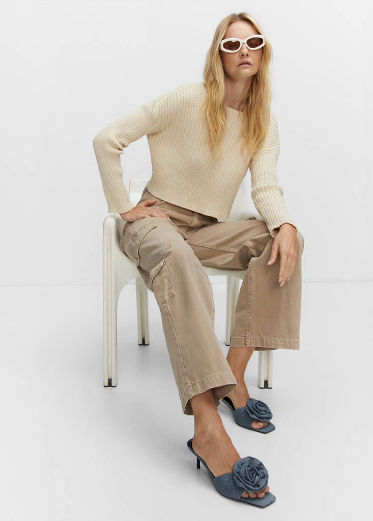 Square toed. Stiletto heel. Flower detail. Unclosed. 4 cm heel