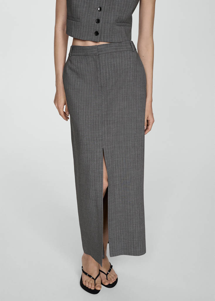 Straight design. Long design. Mid-rise. Belt loops. Two side pockets. Two welt pockets at the back. Concealed button, hook and zip fastening. Opening in the lower front. Total look