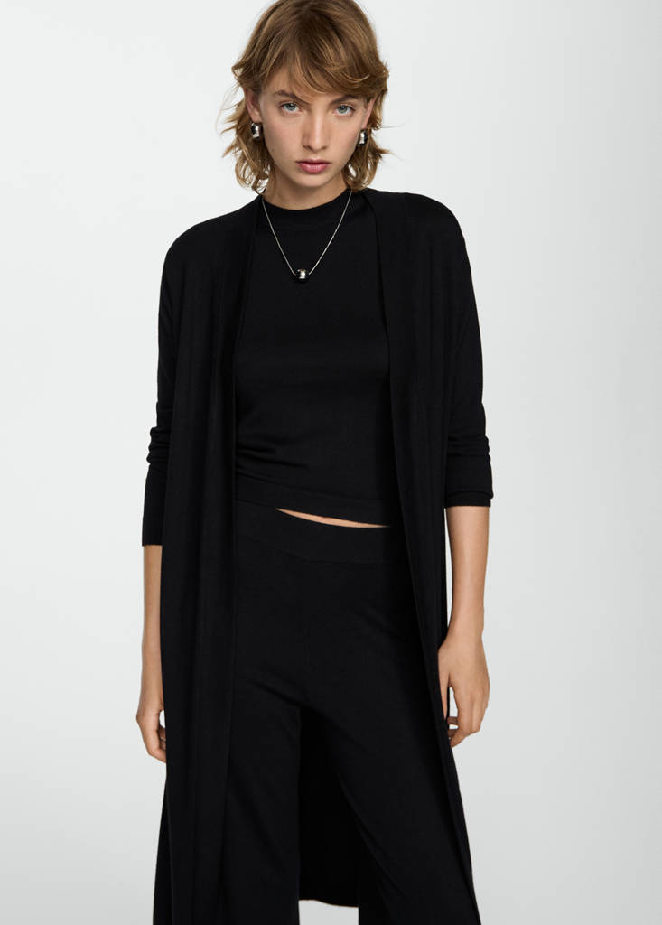 Online ExclusiveFine knit long cardiganCurrent price [JPY 6,990 ]JPY 6,990Select a colourBlackThe model is wearing size S and is 178cm tall.Select your sizeXSSMLXLDimensionsAdd to WishlistSee lookFree delivery to storeFine knit fabric. Straight design. Long design. V-neck. Long sleeves. No FasteningDetails, composition and careStore availability