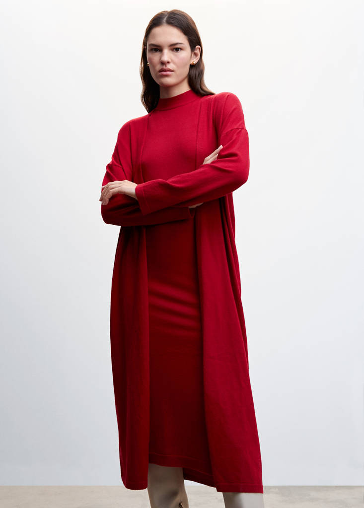 Long knit cardiganCurrent price [JPY 6,990 ]JPY 6,990Select a colourRedLarge garment - Choose one size down from the usualSelect your sizeXXSXSSMLXLXXLAdd to WishlistSee lookFree delivery to storeFine knit fabric. Long design. Long sleeve. Straight design. Plus Size Available. Co-ordDetails, composition and careStore availability