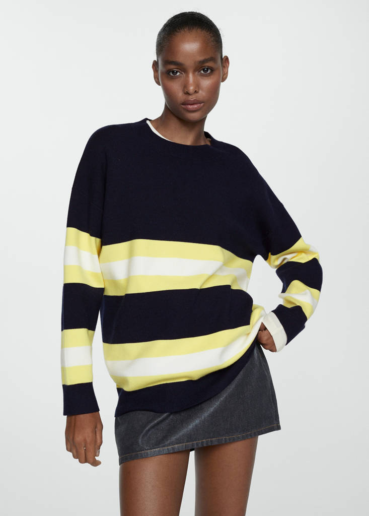 Fine knit fabric. Oversized design. Round neck. Long sleeves. No Fastening. Available Plus. Striped design