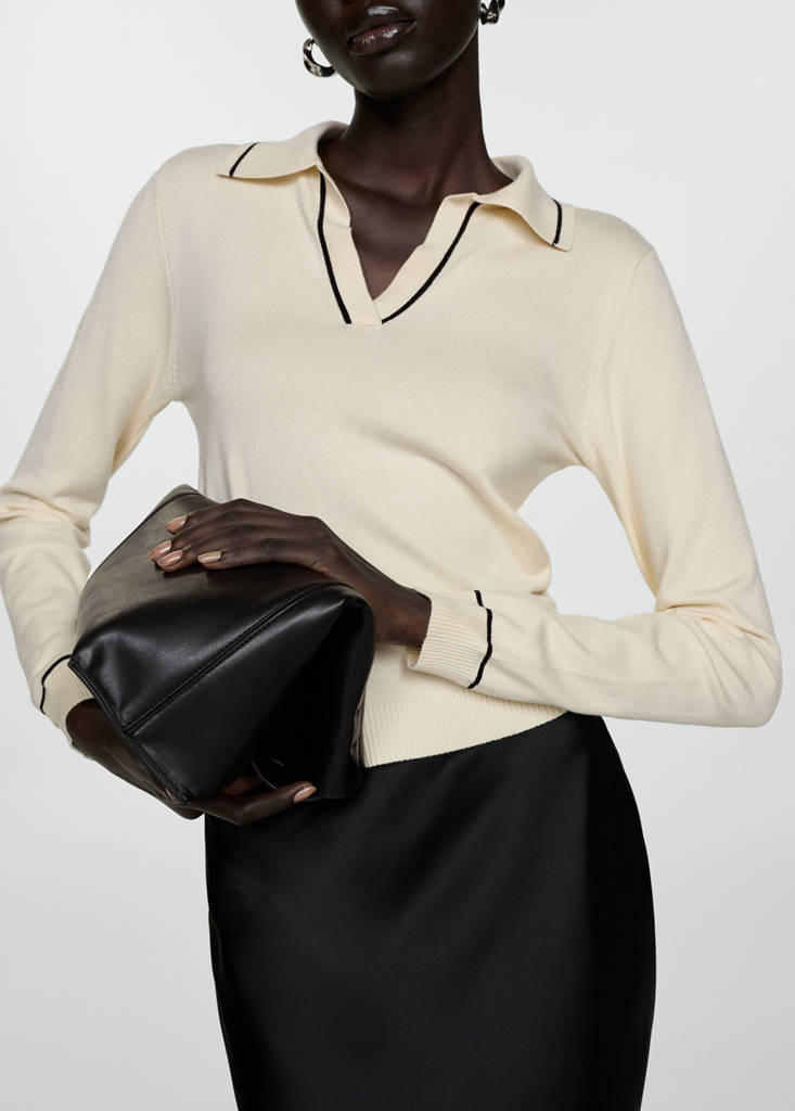 Knitted polo-neck sweaterCurrent price [JPY 5,990 ]JPY 5,990Select a colourEcruSelect your sizeXXSXSSMLXLXXL1XL2XL3XL4XLDimensionsAdd to WishlistSee lookFree delivery to storeKnit fabric. Straight design. Polo collar. Long sleeves. Contrasting stripes detail. Available PlusDetails, composition and careStore availability