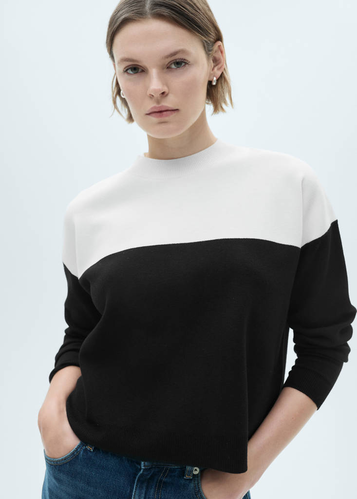 Fine knit fabric. Long sleeves. Round neck. Oversized design. Available Plus. Two-tone print