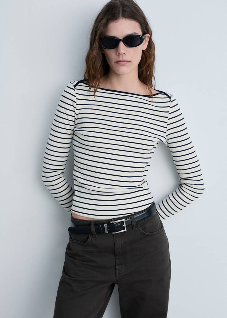 Striped boat-neck t-shirtCurrent price [JPY 4,990 ]JPY 4,990Select a colourOff WhiteSelect your sizeXXSXSSMLXLXXL1XL2XL3XL4XLDimensionsAdd to WishlistSee lookFree delivery to store100% cotton fabric. Straight design. Striped print. Boat neckline. Long sleeves. No Fastening. Available PlusDetails, composition and careStore availability