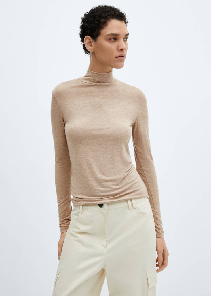 Turtleneck long-sleeved t-shirtCurrent price [JPY 2,990 ]JPY 2,990Select a colourSandSelect your sizeXXSXSSMLXLXXLDimensionsAdd to WishlistSee lookFree delivery to storeStretch fabric. Slim fit. High neck. Long sleeves. Gathered detail. Office looks. Fitted designDetails, composition and careStore availability