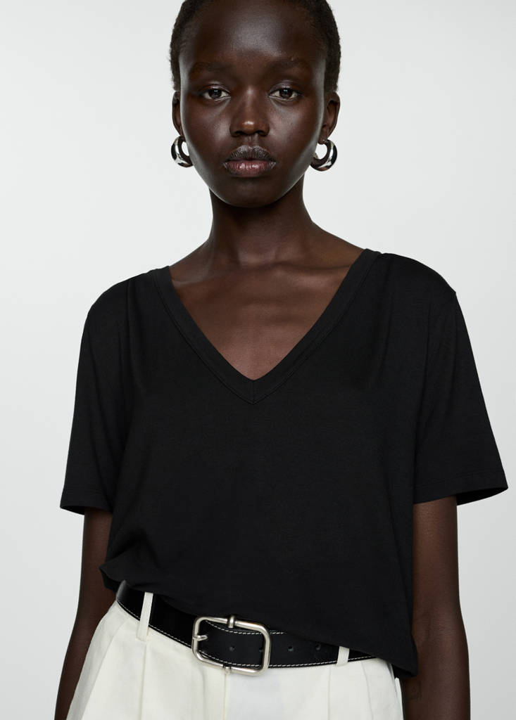 Fluid fabric. Straight design. V-neck. Short sleeves. No Fastening. Available Plus. Regular fit
