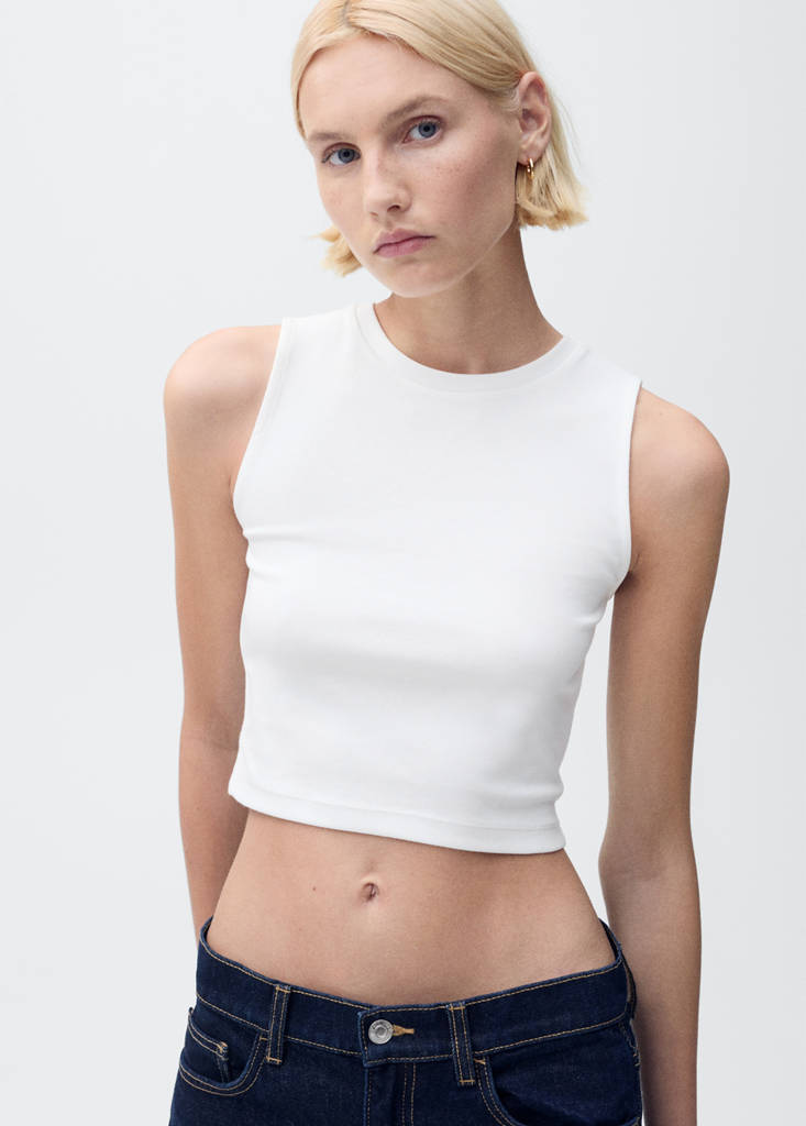 Cotton sleeveless cropped topCurrent price [JPY 3,990 ]JPY 3,990Select a colourWhiteThe model is wearing size S and is 179cm tall.Select your sizeXSSMLXLDimensionsAdd to WishlistSee lookFree delivery to storeCotton blend fabric. Fitted design. Crop design. Round neck. Sleeveless. No FasteningDetails, composition and careStore availabilityItem qualitiesRecycled cottonAt least 20%This fibre is obtained from pre- and post-consumer textile waste that is transformed into new fabrics.