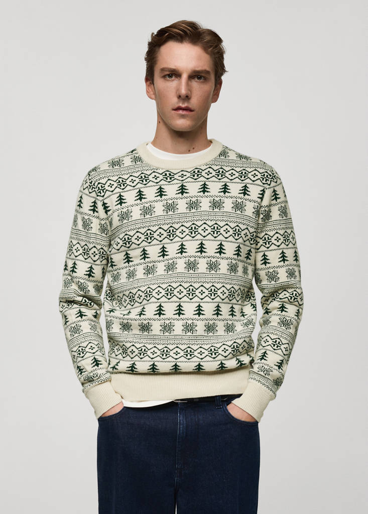 Round neck. Midpoint. Christmas print. Regular fit. Ribbed finishes