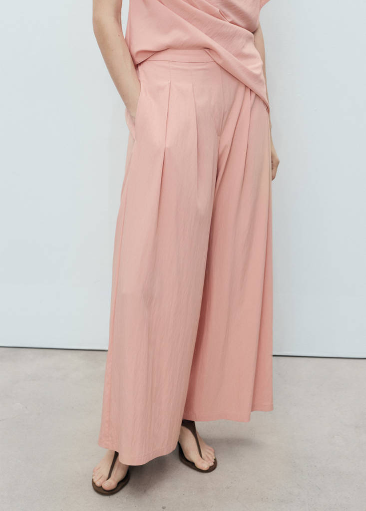 Кроп-дизайн. Фасон палаццо. Эластичная талия. Защипы. Два боковых кармана. Без застёжки. Подкладка 100% хлопок. Total look
