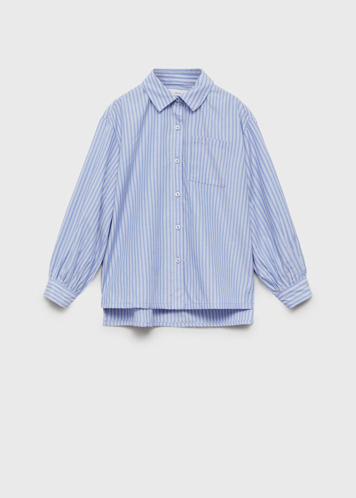 Cotton fabric. Straight design. Striped print. Patch pocket on the chest. Shirt collar. Long sleeves. Buttoned cuffs. Front closure with buttons