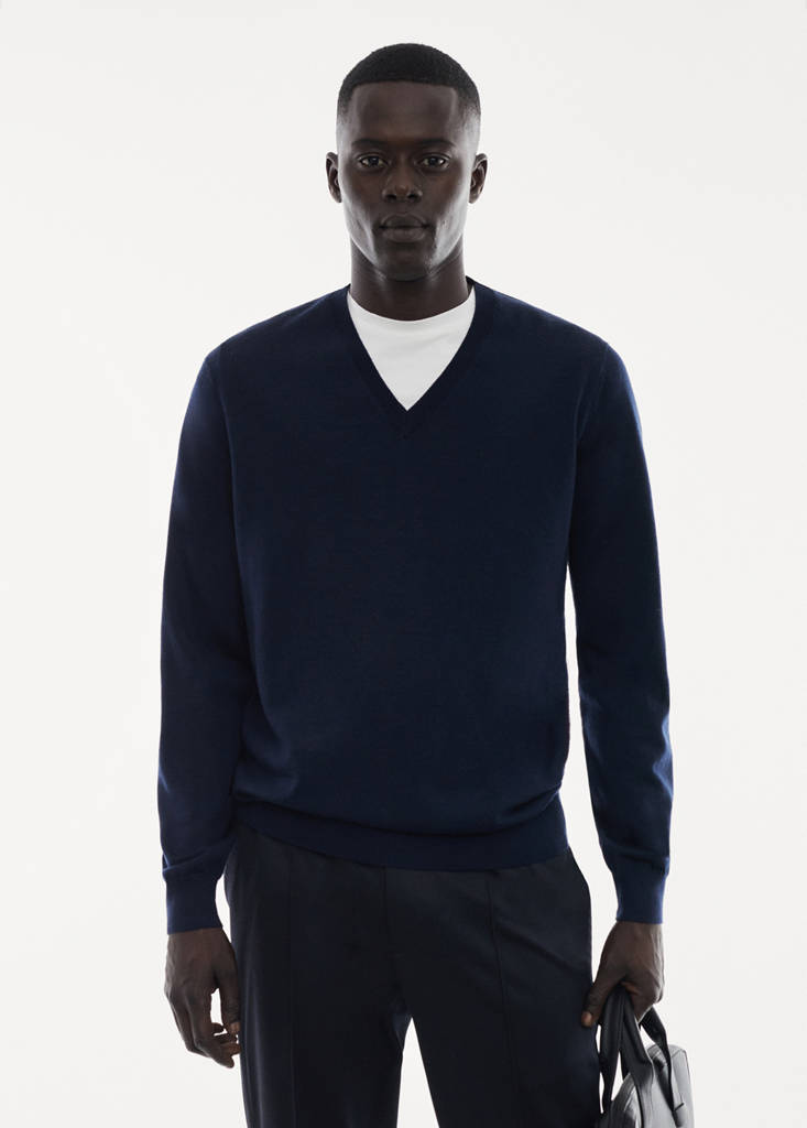 Performance Collection. Machine washable. Regular fit. 100% merino wool. Fine knit fabric. V-neck. Long sleeves with elastic cuffs. Straight hem. Thermoregulating: This fabric offers optimal breathability to keep you at a stable temperature