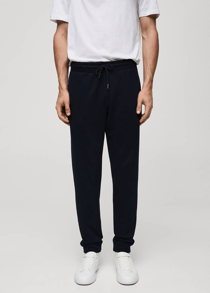 Cotton blend fabric with brushed interior. Elastic waist with adjustable drawstring. Two side pockets. Ribbed hems. Cinnamon color is exclusive online. Slim fit. Jogger design. Cotton blend fabric. Back patch pocket. Elastic hem