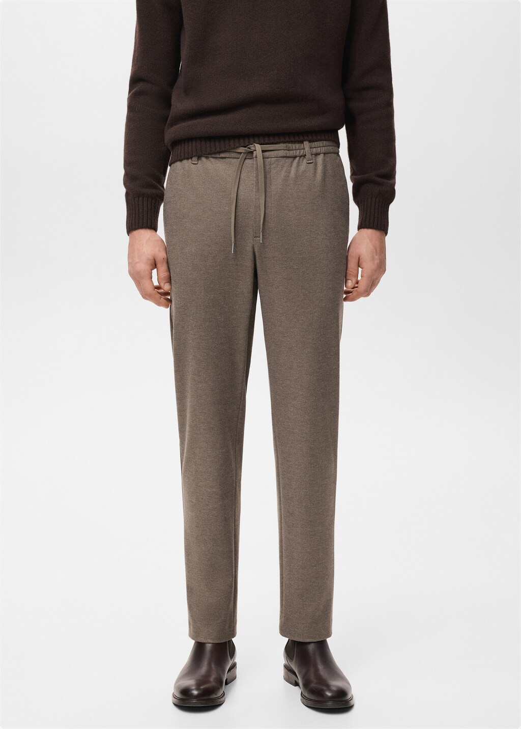 New NowSlim-fit flannel trousersCurrent price [US$ 69.90 ]US$ 69.90Select a colourTobacco BrownSelect your size38Not available. I want it!40Not available. I want it!42Not available. I want it!44Not available. I want it!46Not available. I want it!Size guideNotify meAdd to WishlistSee lookFree delivery to storeSee availability in storeDescriptionSlim fit. Flannel fabric. Two side pockets. Two welt pockets with button at the back. Belt loops. Elastic waist with drawstring. Front zipper and button closure.See detailsShare