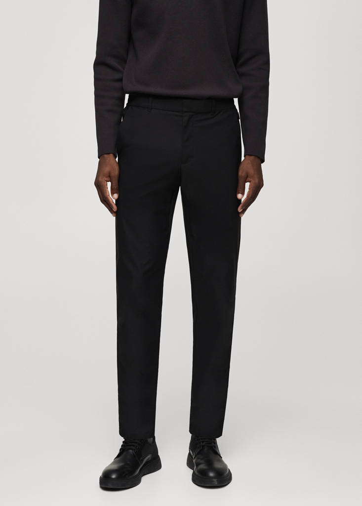 Performance Collection. Solotex® is a material that provides a smooth texture. It is also, highly breathable and easy care, consequently this garment can be machine washed. Slim fit. Belt loops. Elasticated waistband. Zip and buckle closure. Two side pockets. Two welt pockets at the back. Hem with elastic band