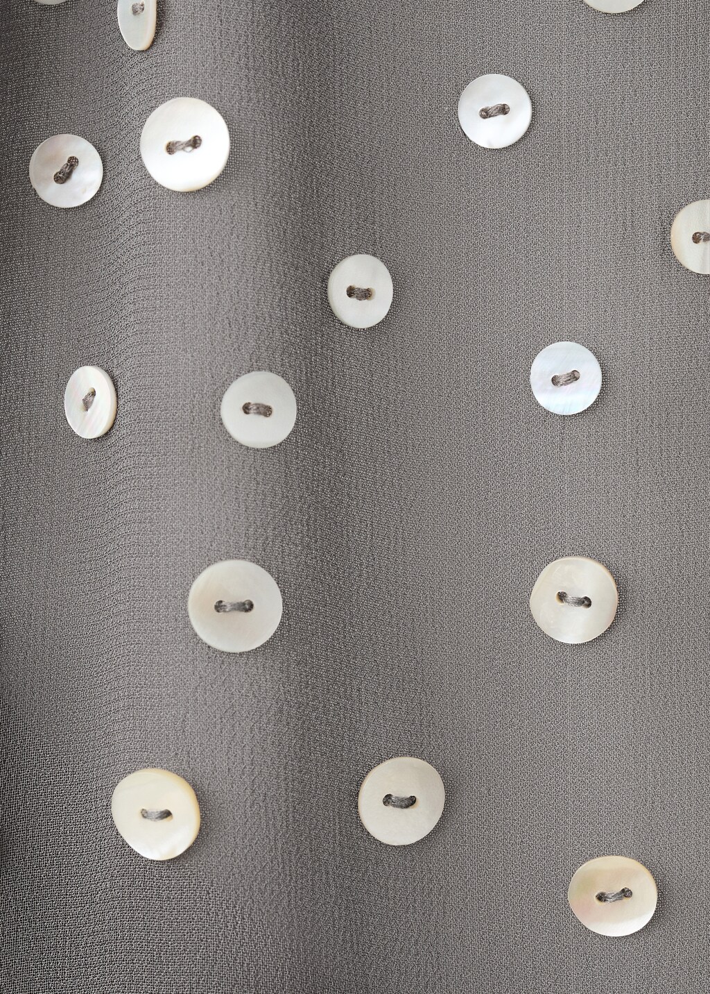 Short design. Semi-transparent fabric. Decorative button detail. V-neck. Sleeveless. Open back. Knot closure on the neck. Online Exclusive