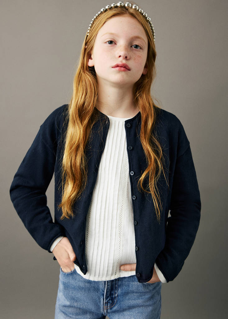 Standard Length. Long Sleeve Length. Straight Silhouette. Round Lapel Collar. Fine Knit Structure. Front Closure Location. 100% cotton fabric. Straight design. Round neck. Long sleeves. Front closure with buttons