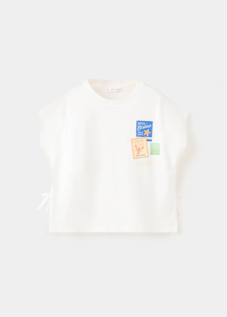 100% cotton fabric. Straight design. Round neck. Sleeveless. Bow details on the sides. Printed drawing on the chest