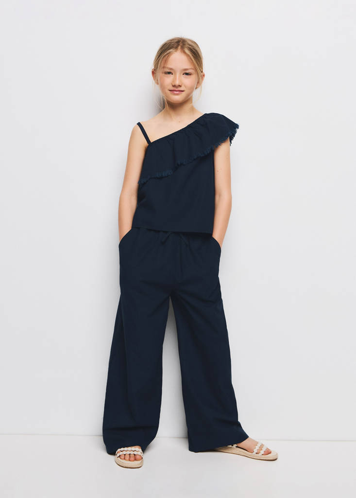 Crafted from a blend of cotton and linen, this straight and long design offers a fluid fabric. The elasticated waistband with adjustable drawstring ensures comfort, while two side pockets and a back patch pocket add functionality.