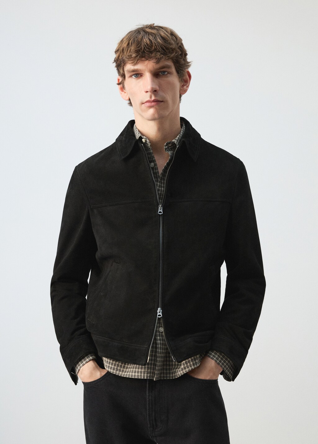 Suede leather jacket with zipper fastening